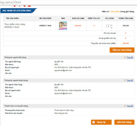 Bước 5: Bạn click TIẾP TỤC để kiểm tra lại toàn bộ đơn hàng (có thể sửa các thông tin nếu chưa điền chính xác) và click GỬI ĐƠN HÀNG để hoàn thành.